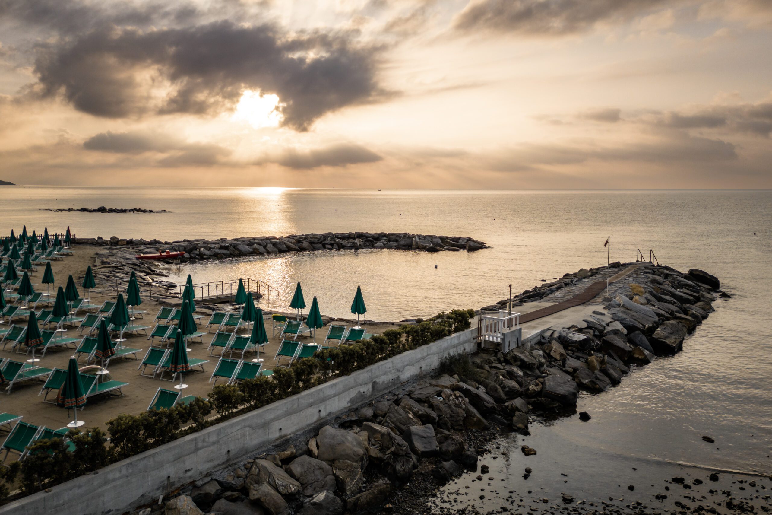 Ogni Junior Suite dispone di un ampio terrazzo che regala una splendida vista sul golfo dianese, offrendo così uno scenario mozzafiato. Il soggiorno è annesso alla zona notte e il bagno è dotato di doccia.