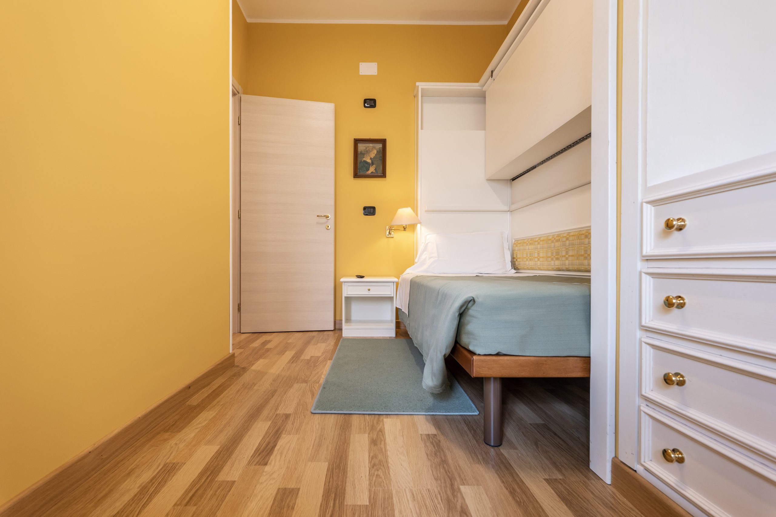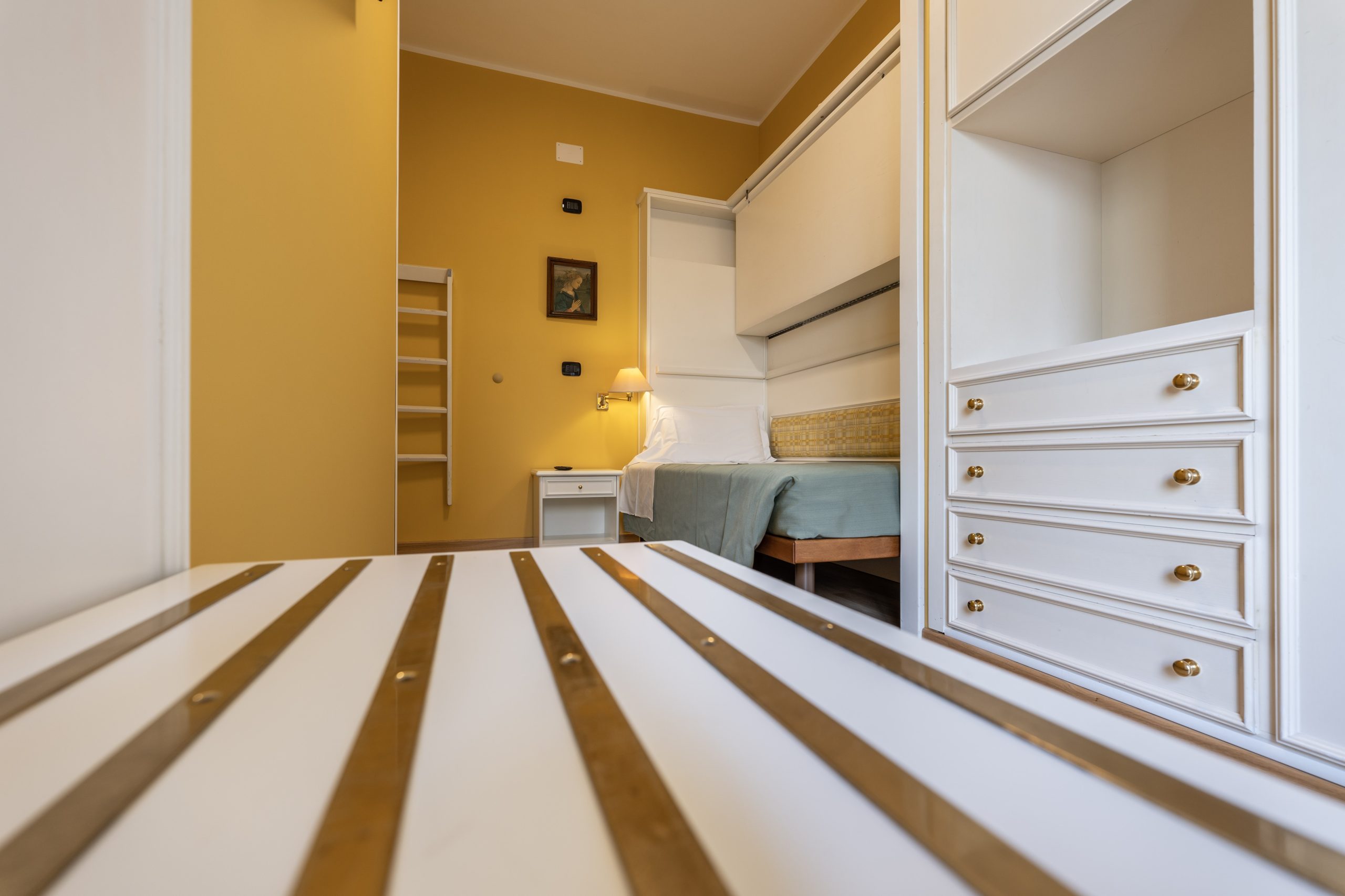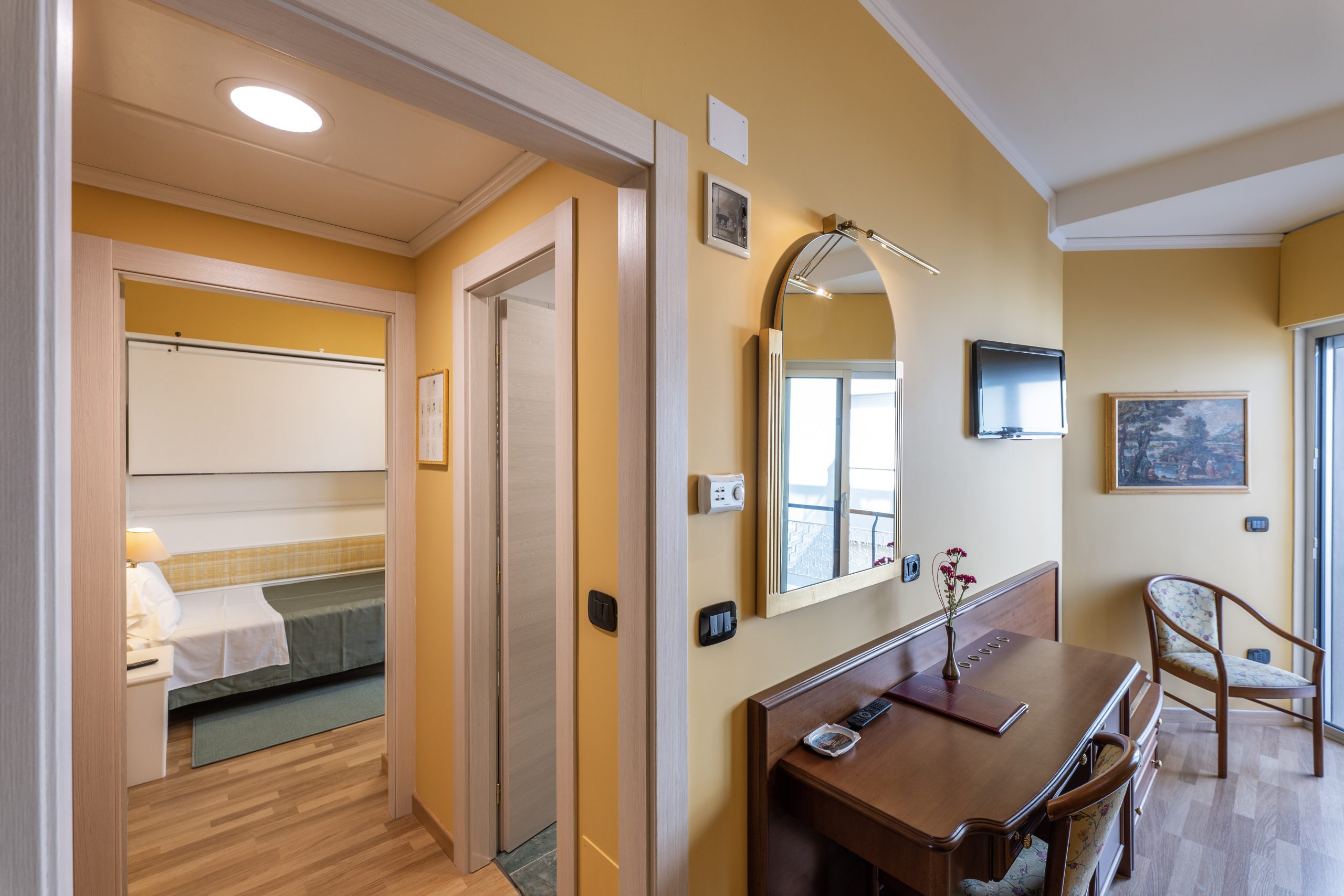 Camera matrimoniale e singola comunicanti, con balconi vista mare laterale. Pensata per il relax di piccoli gruppi o famiglie. Bagno in comune con doccia.